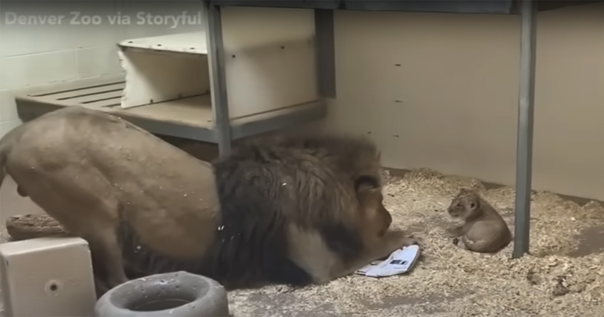 Et helt spesielt øyeblikk ble dokumentert da et overvåkningskamera inne i løveinnhegningen ved Denver Zoo fanget opp en hjertevarmende hendelse: en løvehann møtte sin sønn for aller første gang.