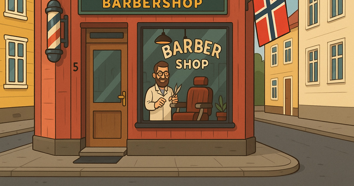 “Du skjønner, han er ikke direkte smart den gutten.” humrer frisøren.