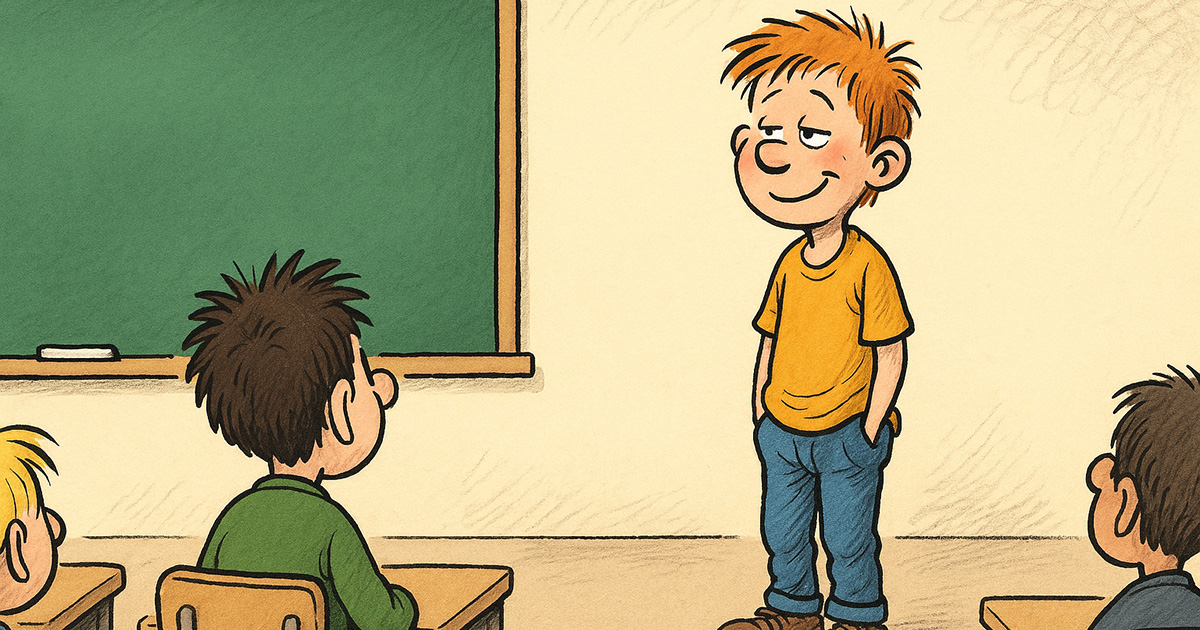 Ole går opp til tavla, snur seg sakte og spør læreren: