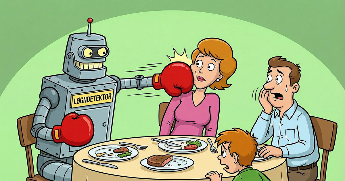 Pappaen i huset kjøper en løgndetektor-robot som slår folk når de lyver.