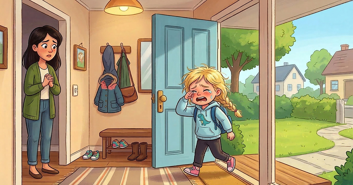 Lille Eva på seks år kommer gråtende hjem fra skolen.